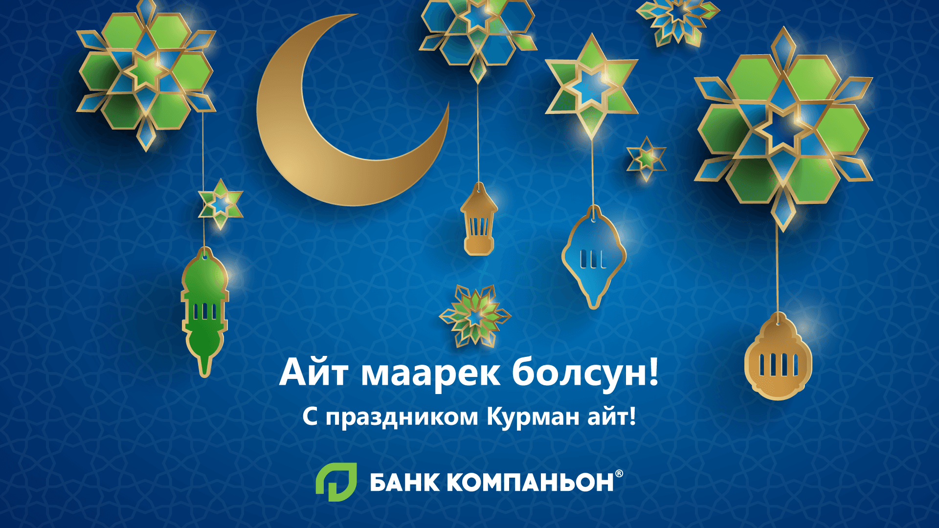 Банк Компаньон поздравляет вас с наступающим праздником Курман айт и информирует о графике работ отделений на 16 и 17 июня 2024 года:
