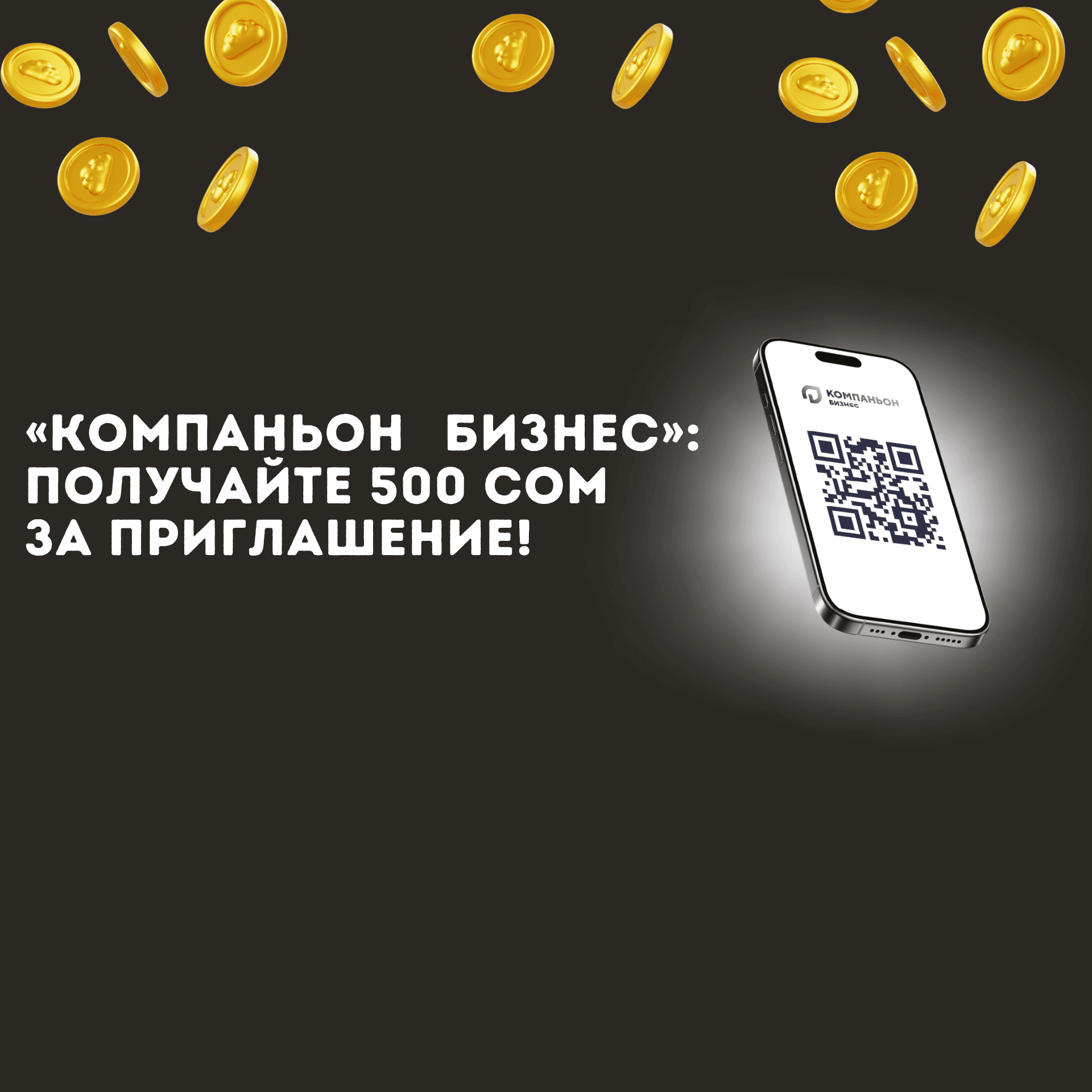 КУРБУЛАРЫҢЫЗДЫ ЧАКЫРЫП – БОНУСТАРДЫ АЛЫҢЫЗ! Банк Компаньон «Компаньон Бизнес» мобилдик тиркемесинин колдонуучулары үчүн пайдалуу акцияны узартат. Эми курбуларыңызды чакырып, бир жыл бою бонус ала аласыз.Акциянын мөөнөтү:2026-жылдын 15-марты – 20
