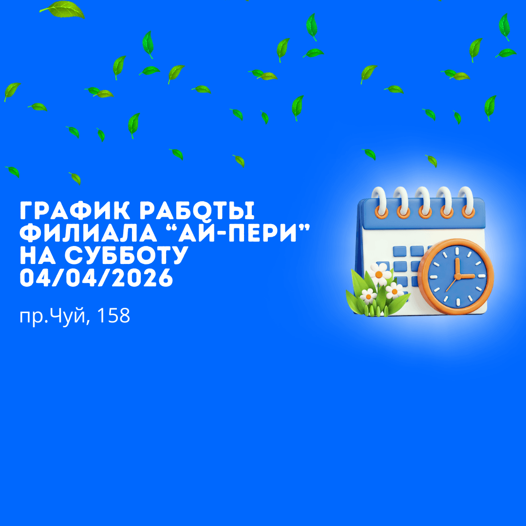 Сиздерге 2026-жылдын 4-апрелинде (ишемби) Бишкек шаары, Чүй пр., 158 дарегинде жайгашкан «Ай-Пери» филиалынын иш графигин маалымдайбыз.