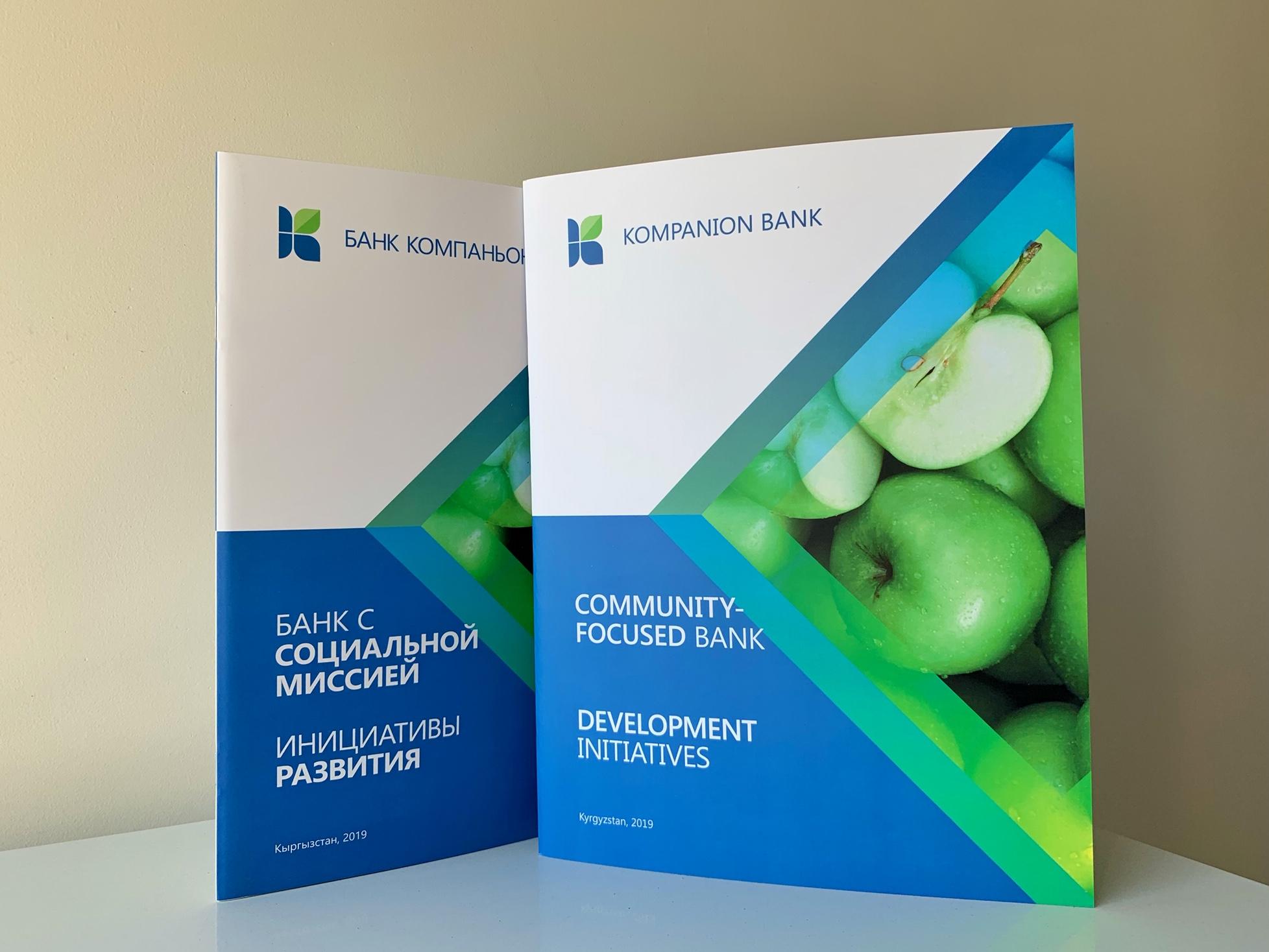 Биз Банк 2019-жылдын майында «Социалдык миссиясы бар банк » брошюрасын чыгарганын кубануу менен билдиребиз, анда банктын бардык өнүктүрүү демилгелерин жана Компаньон Банкынын командасы тарабынан 15 жылда жасалган иштердин натыйжаларын кеңири сүрөттөгөнбүз.