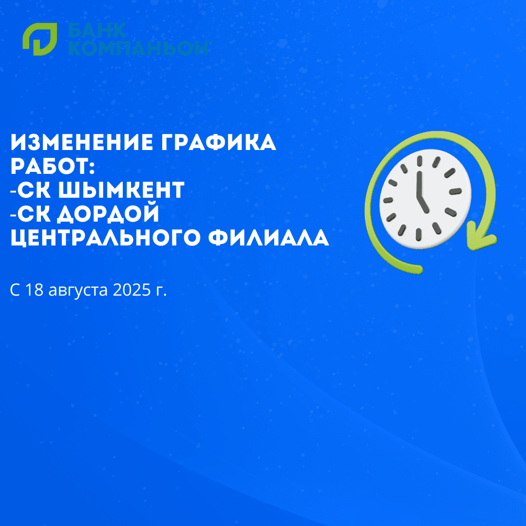Компаньон Банкы төмөнкү бөлүмдөрдүн иш графигинде өзгөрүүлөр болгонун маалымдайт: