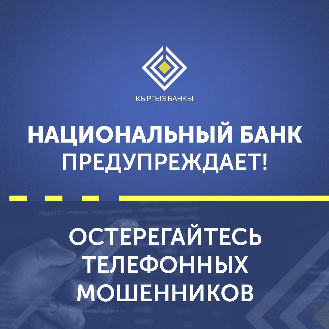 - КЫРГЫЗ РЕСПУБЛИКАСЫНЫН УЛУТТУК БАНКЫ ЭСКЕРТЕТ: ТЕЛЕФОН ЧАЛУУ МЕНЕН АЛДАМЧЫЛЫК ФАКТЫЛАРЫ КӨБӨЙДҮ!