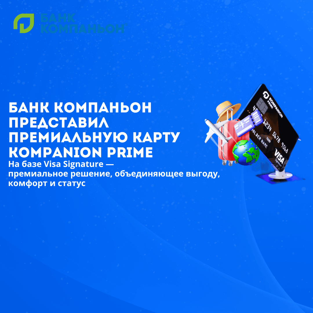 Компаньон Банкы Visa Signature платформасындагы жаңы премиум продуктун — Kompanion Prime картасын ишке киргизди. Бул продукт статустун, Банктын эксклюзивдүү артыкчылыктарын жана дүйнөлүк санариптик төлөм индустриясынын лидери Visa компаниясынын мүмкүнчүлүктөрүн айкалыштырат.