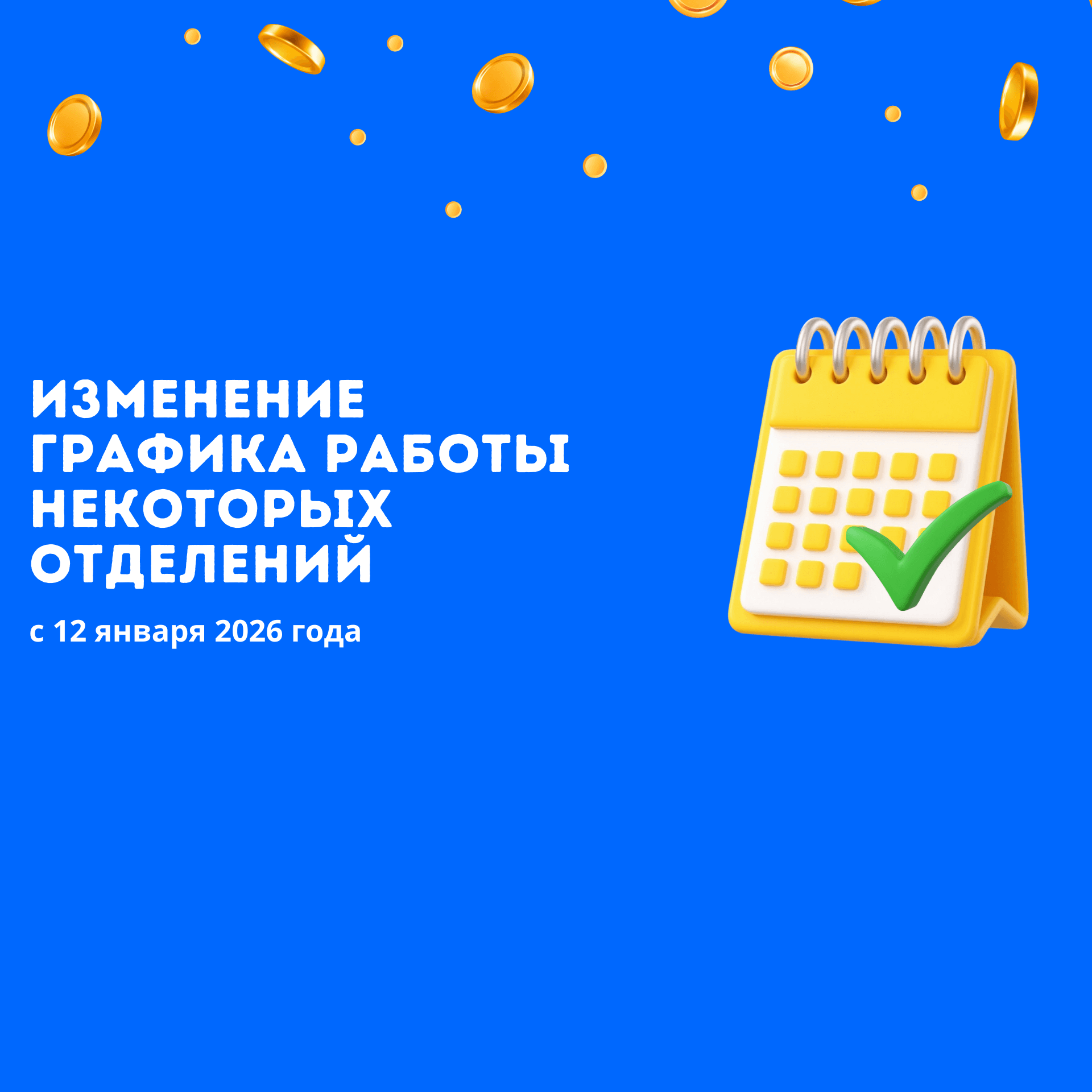2026-жылдын 12-январынан тартып төмөнкү бөлүмчөлөрдүн иш графигине өзгөртүүлөр киргизилет: