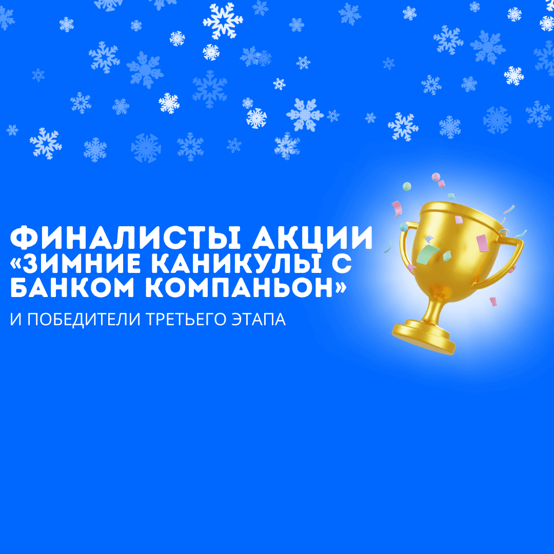 Финал акции «Зимние каникулы с Банком Компаньон» состоялся - и мы рады представить финалистов и победителей 3-го этапа акции.По итогам всего периода проведения акции были определены с