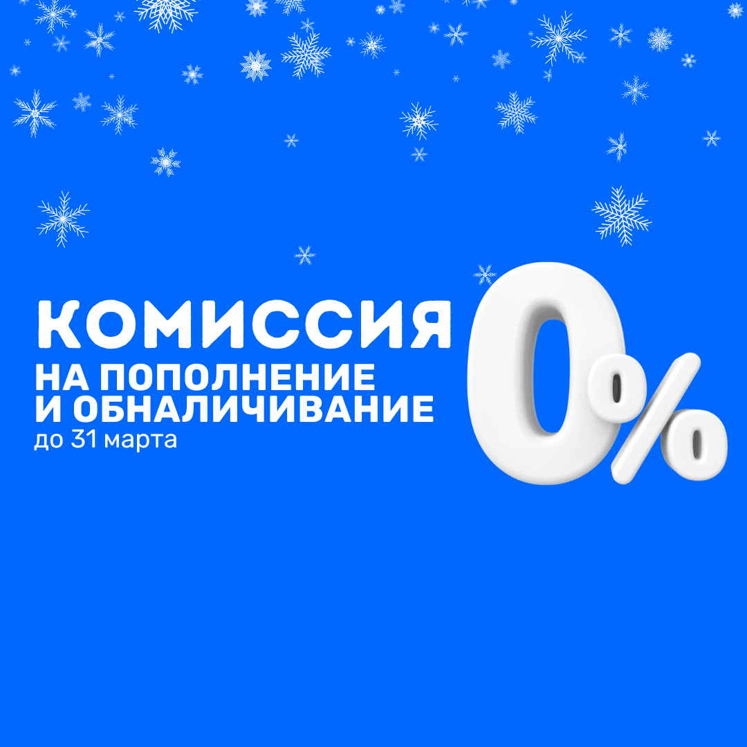 У нас отличные новости! Акция по обнулению комиссий на обналичивание и пополнение счетов продлевается до 31 декабря 2024 года.