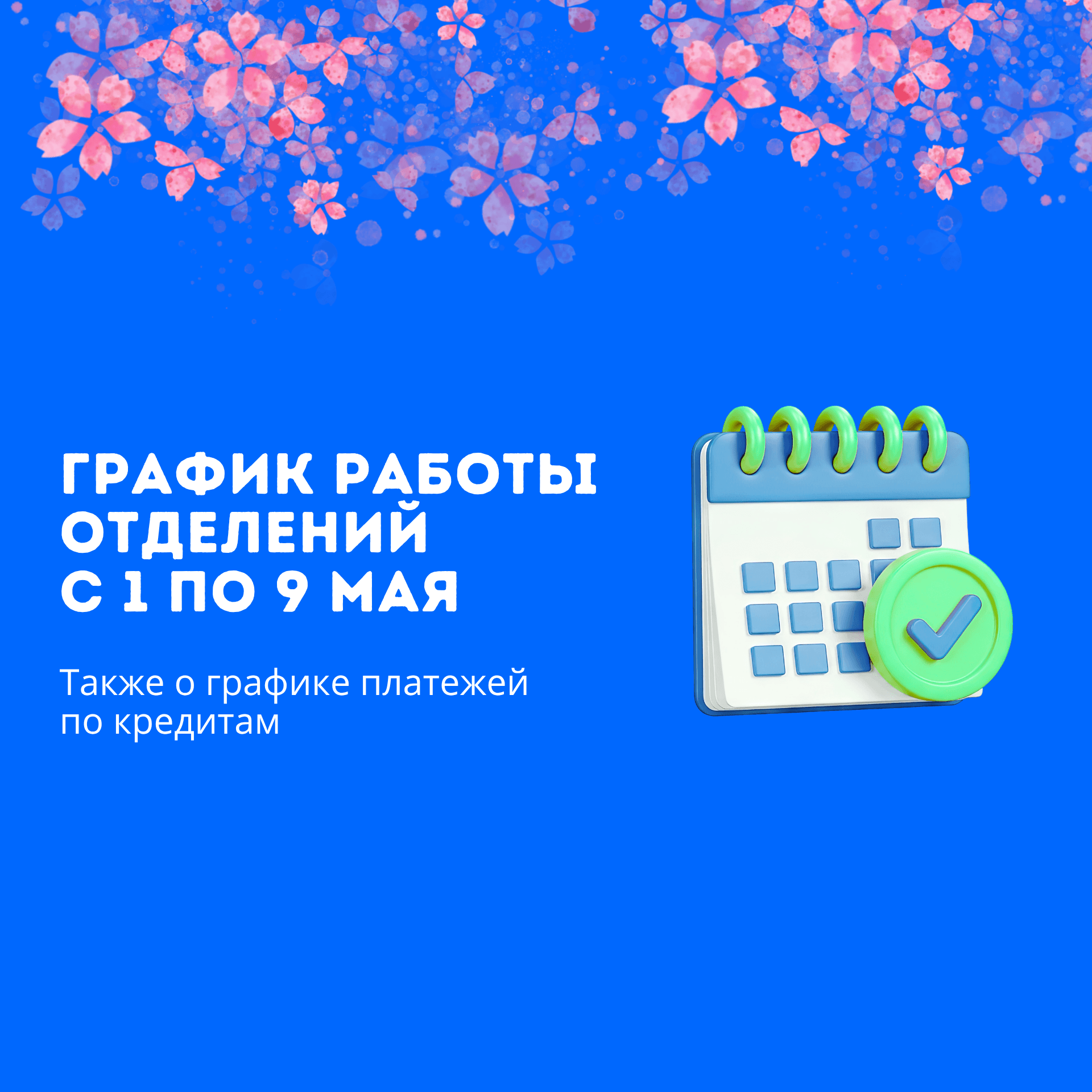- ГРАФИК РАБОТЫ ОТДЕЛЕНИЙ С 1 ПО 9 МАЯ 2026 года